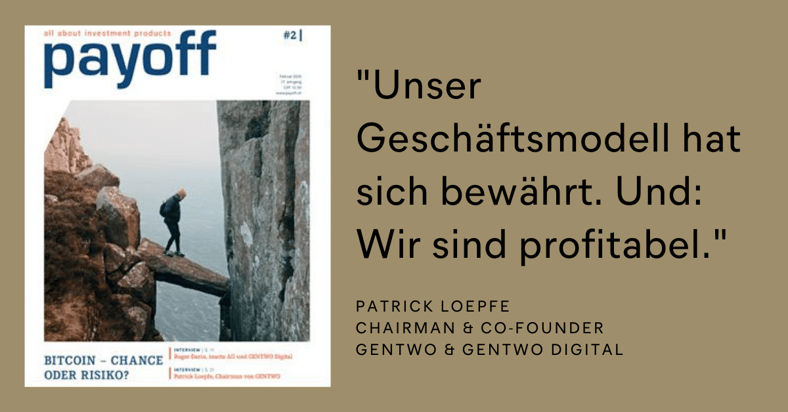 Patrick Loepfe, chairman of GENTWO, interviewed by Payoff magazine. He talks about his initial idea, today’s product range, and further development.